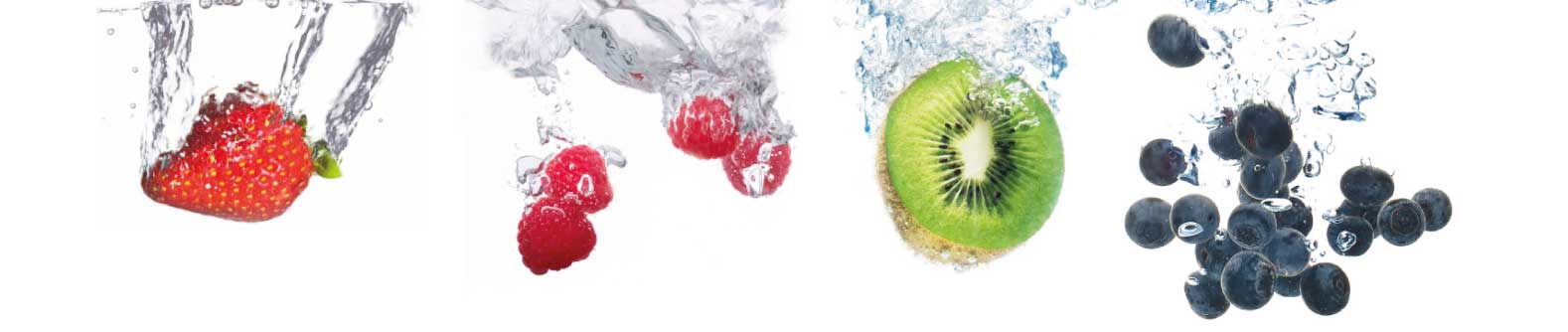 Various fruits dropped into water